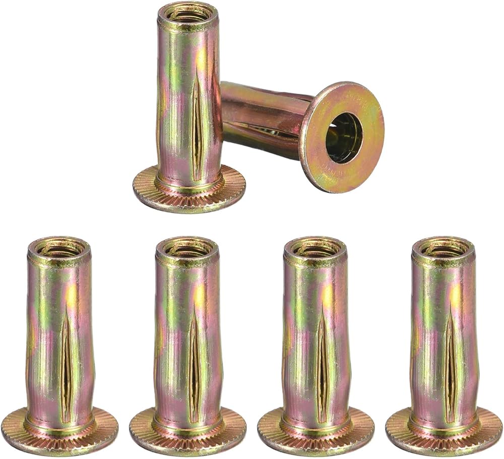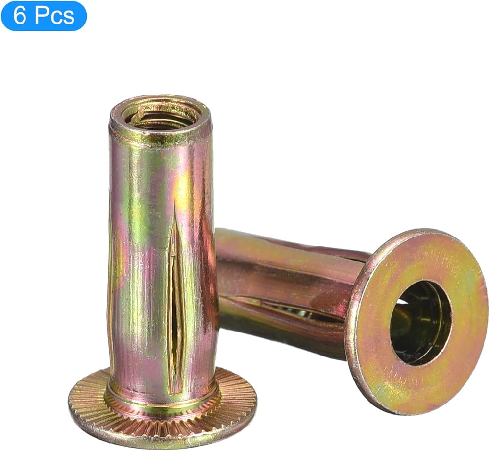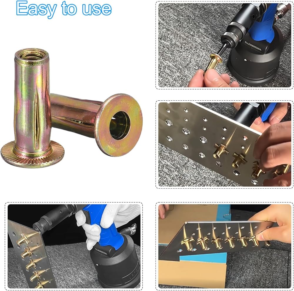Material: Multi grip rivet nut is made of carbon steel, gold zinc surface treatment, high hardness, oxidation resistance, rust resistance and corrosion resistance, and durability.