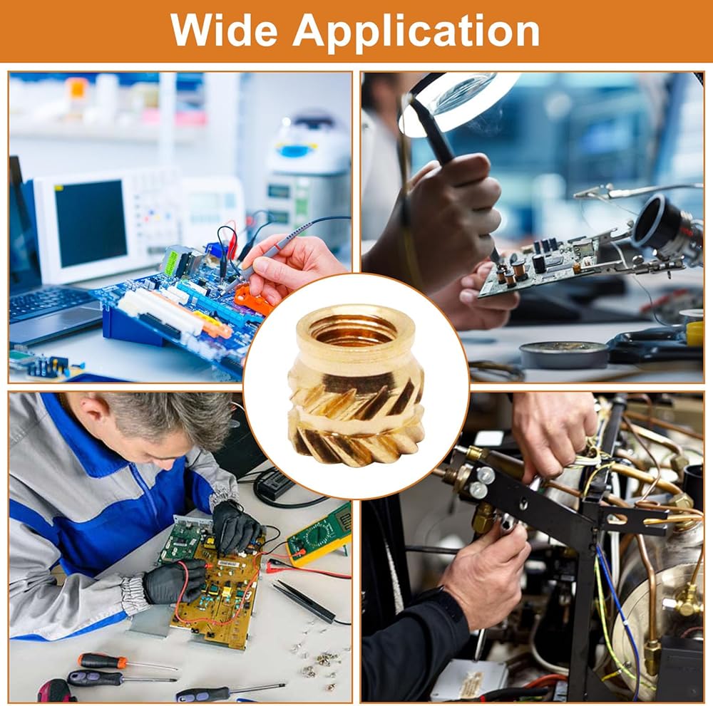 Durable and Corrosion-Resistant: The heat inserts are made of high quality brass, which ensures excellent heat conductivity and corrosion resistance. The knurled threaded inserts for plastic provide a stronger grip and can withstand high levels of tensile force