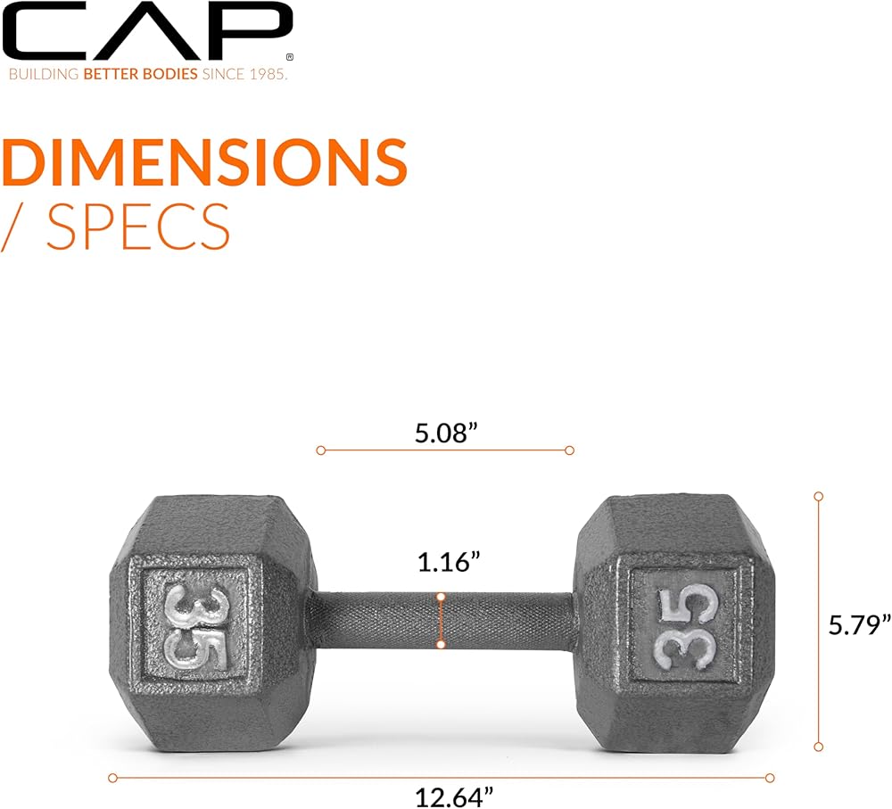 CAP Barbell Cast Iron Hex Dumbbell, Single, 35 lb