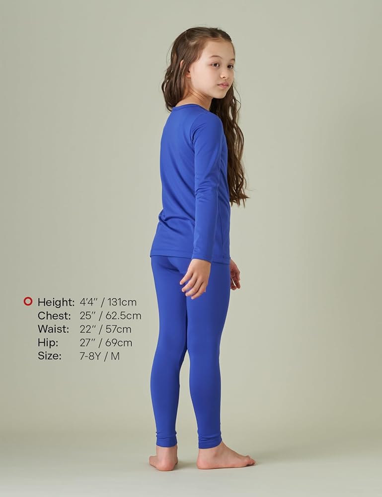 ALL-DAY COMFORT IN EVERY SEASON: Designed to excel in both cool and cold conditions, our girls' long sleeve base layer tops and bottoms boast moisture-wicking properties. Say goodbye to dampness as our performance wear thermal underwear effectively wicks away sweat, maintaining a dry and comfortable body. From skiing to running and cycling, these sets are perfect for various activities, serving as reliable cold weather gear and a must-have layering essential.