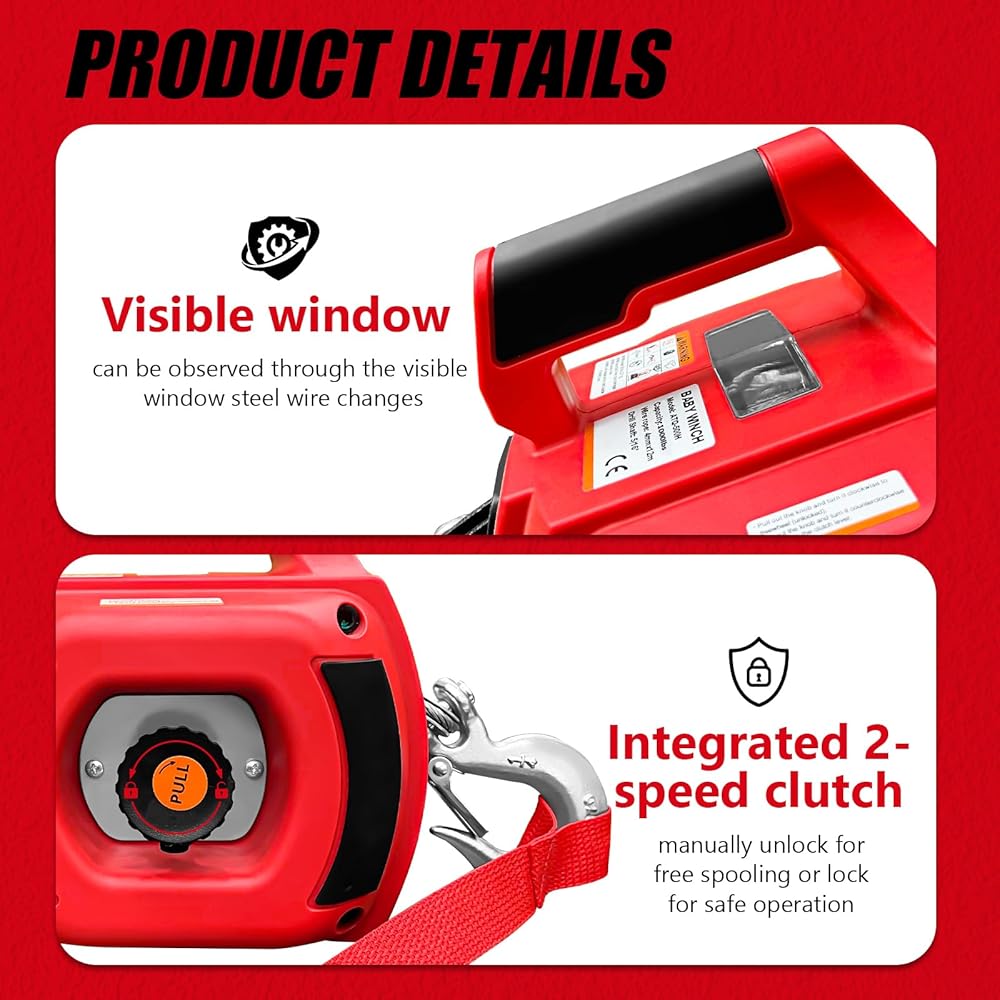 ✔【High-Quality Wire Rope】:40FT galvanized steel rope, providIing reliable pulling power to make sure smooth winching operation