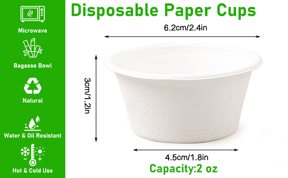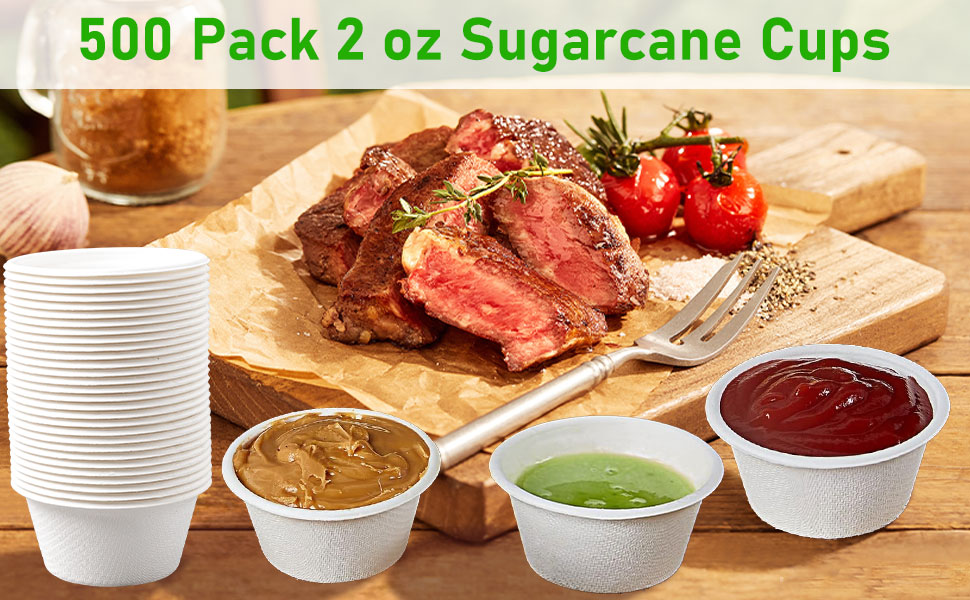 GOOD FOR ENVIRONMENT: Made from 100% sugarcane fiber, BPA-free, these 2 oz sauce cups are 100% biodegradable and suitable for composting for easy disposal,making these cups good for the environment.
