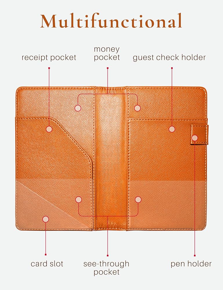 Premium PU Material: This server book is made from premium PU leather and PVC. Looks decent with the best sewing and craft. Its high-quality soft PU leather makes the waitress book sturdy and durable for long-term use