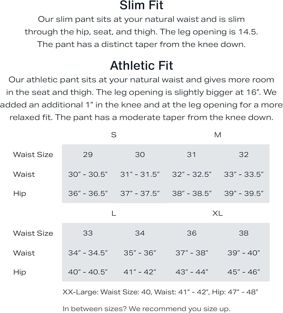Perfect Slim Fit: Offering the perfect balance of style and comfort, Mizzen+Main golf joggers feature a contemporary silhouette that sits at your natural waist and is slim through the hip, seat and thigh; Tapered elasticated leg opening is 12,75"