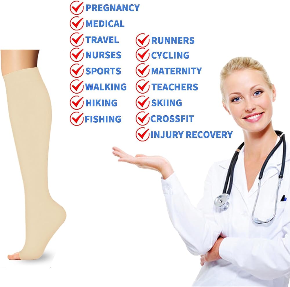 OPEN TOE DESIGN- Toeless Compression Socks provide more flexibility & adjustable space, allowing your feet breathe freely. Without any scratch and irritation during you wear socks. You will not have any uncomfortable feelings all day. These compression stockings are perfect for running, traveling, hiking, cycling, workouts, or anyone on their feet all day! Not only enhance your performance during exercise, also give you comfort and fast recovery from tightness and discomfort after activity.