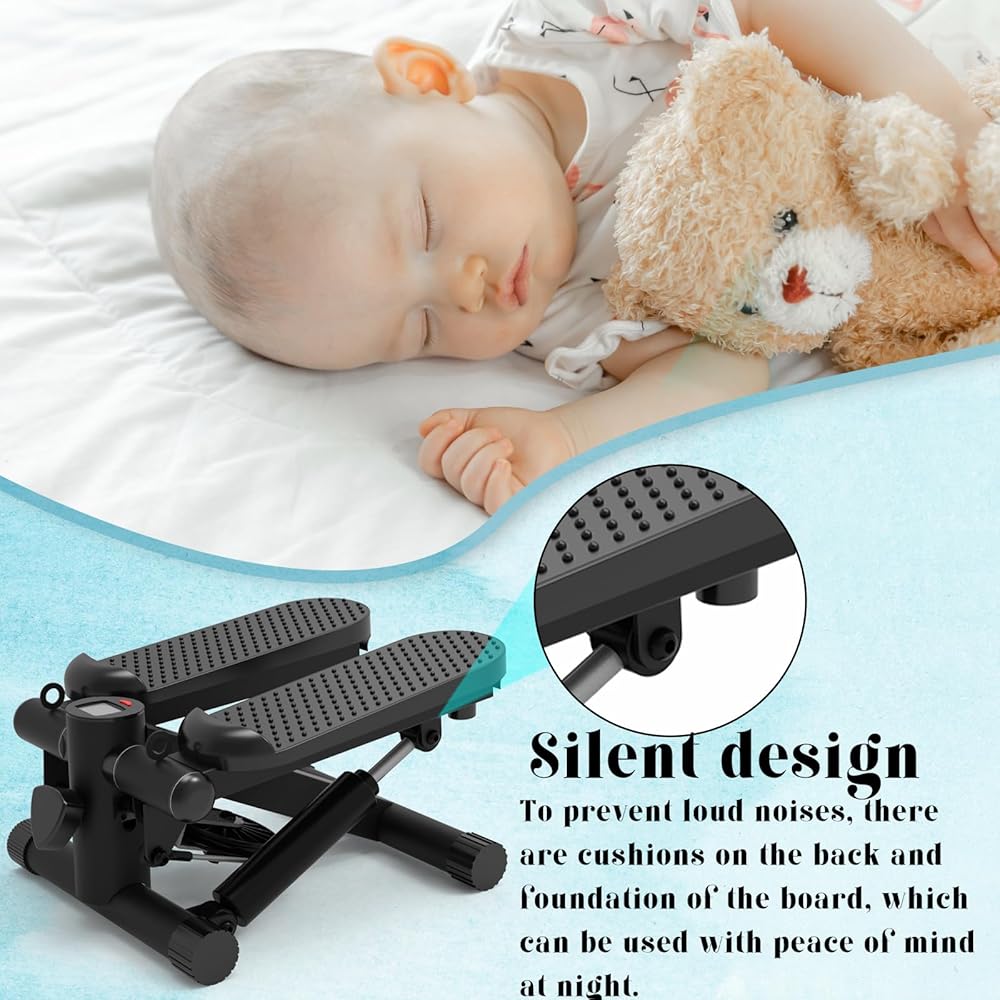 【Work Super Quietly】There is a silent silicone cushioning pad under the TENBOOM stepper machine, you will be cushioned when stepping, the sound of movement is only 35 dB, don't worry about waking up the child sleeping at home.