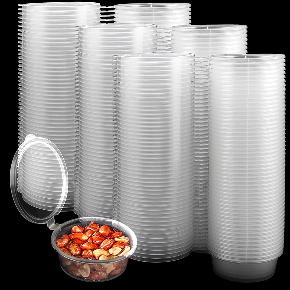 「RELIABLE PERFORMANCE」 - These 4 oz plastic containers with attached lids are made from quality PP plastic, Each plastic portion cup with good flexible and it's thick that not easily break or deform. It's air tight, once closed they stay closed, dosen't leak.