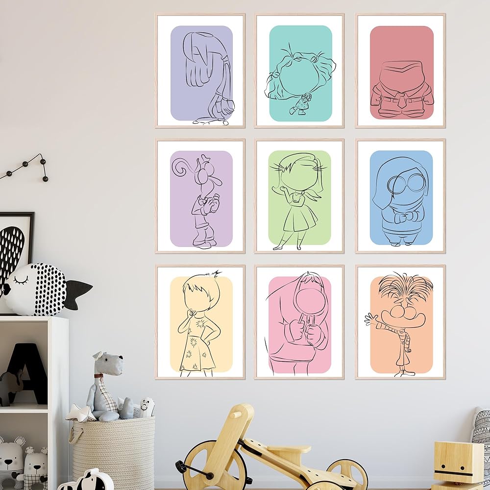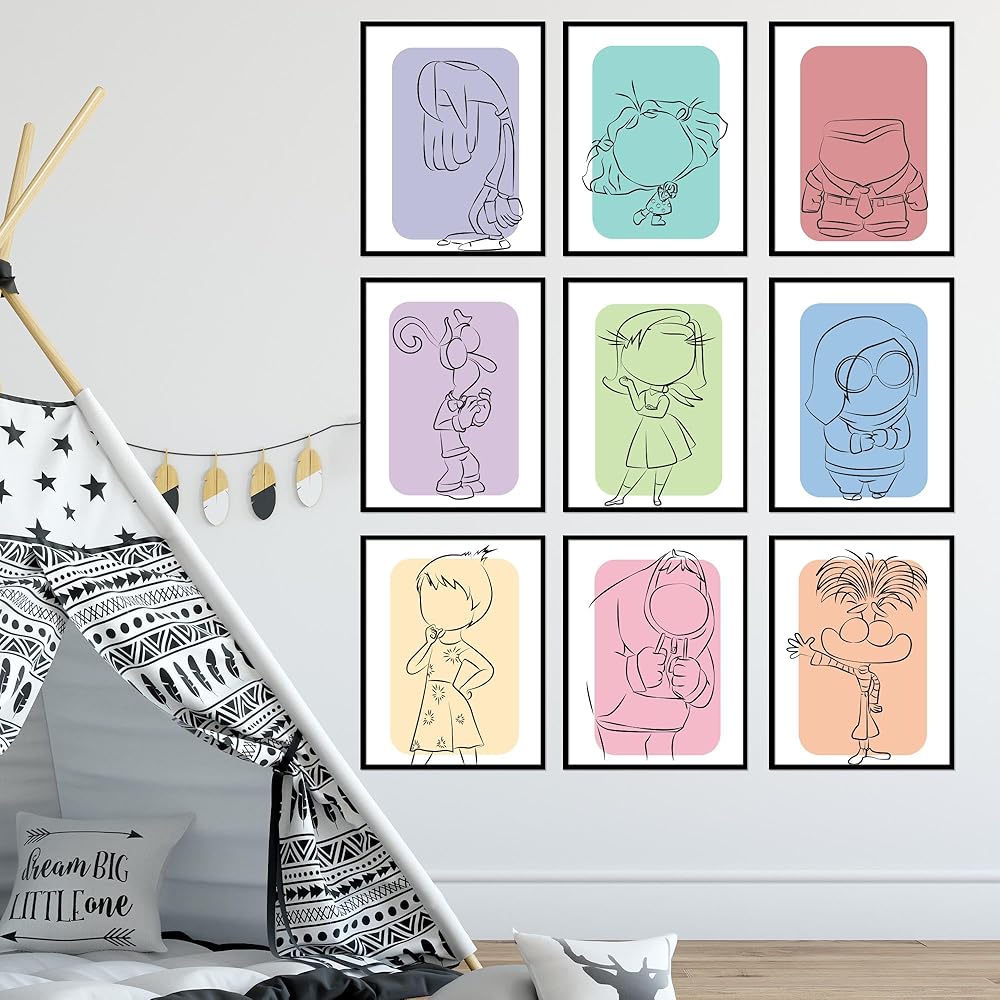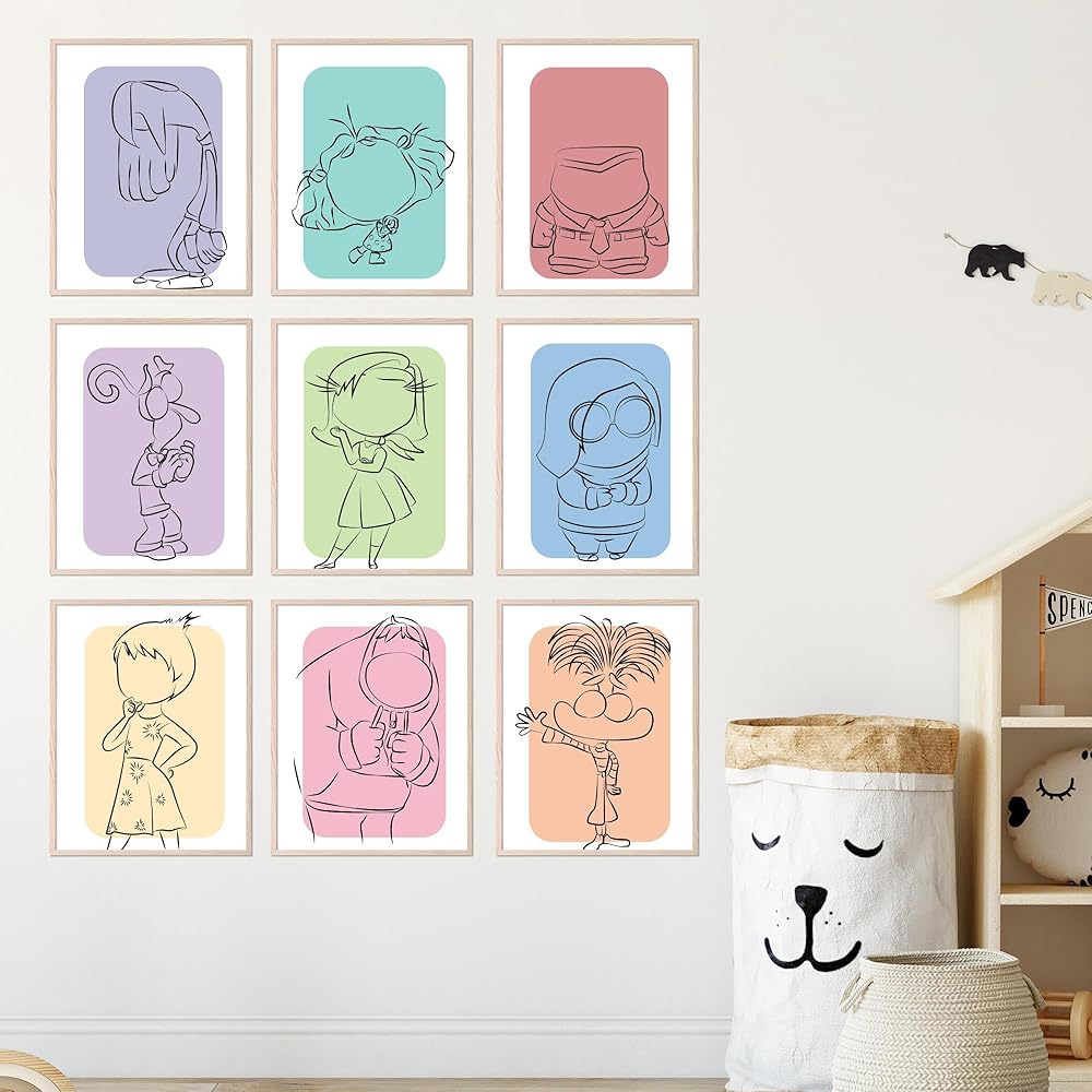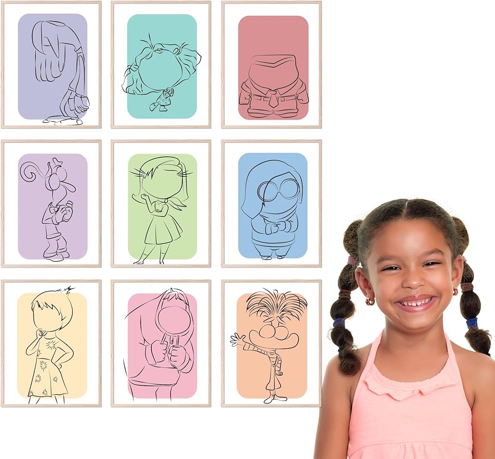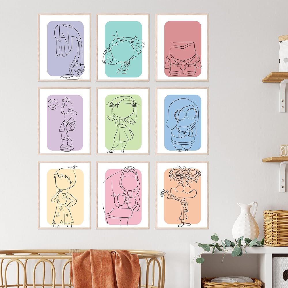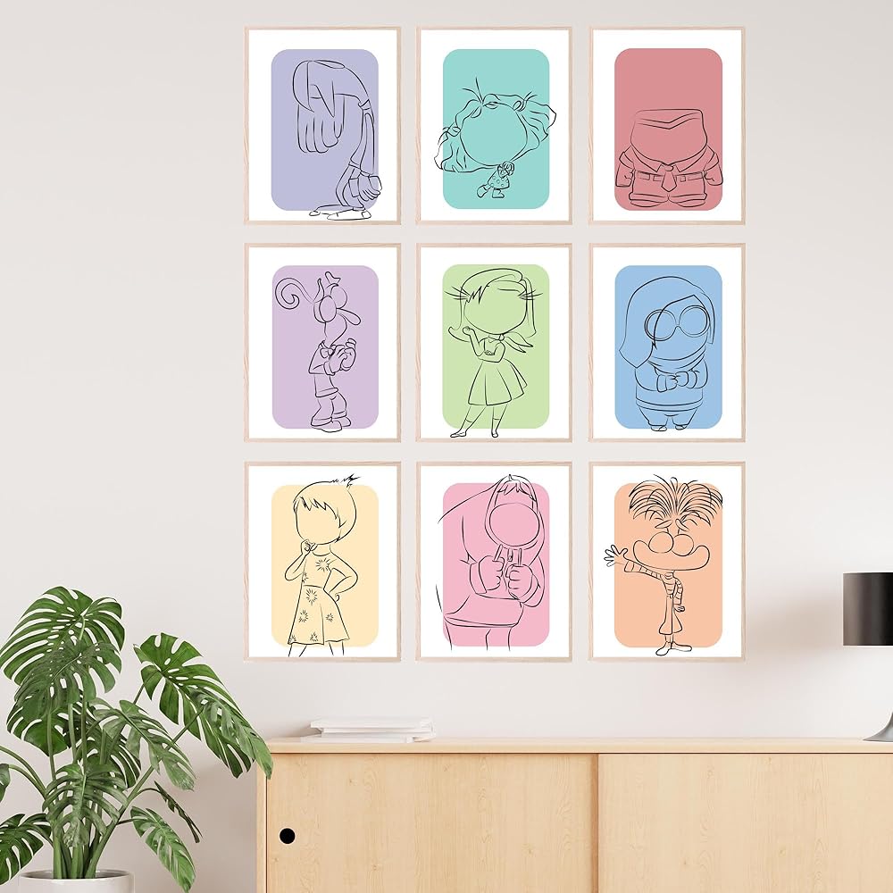Inspiring Inside Out Decorations: Transform any room into a cheerful space with these expressive posters. They are ideal for kids' rooms, playrooms, or any area where you want to add a splash of color and emotional depth.