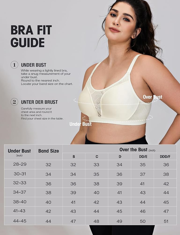 SUPPORTIVE COMFY: Full coverage bras, wireless cups with wide straps provide good supports, while give you maximum comfy. From B to G cup, perfect fits for large bust women.