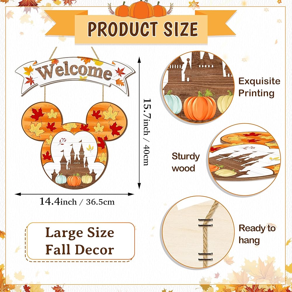 Package Content--Measurements:15.7x14.4inches (40x36.5cm). Large size to meet your decoration needs. The package comes with 1 piece of Fall Welcome door sign, the hanging wooden plaque consists of 2 panels featuring [Welcome] broad and Fall Mouse design, suitable for indoor and outdoor hanging, this adorable hanging sign is perfect for decorating your house.