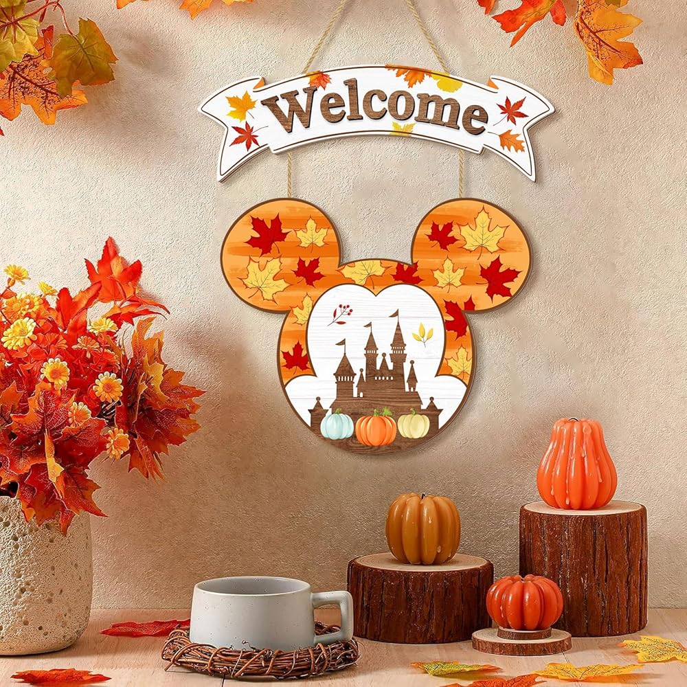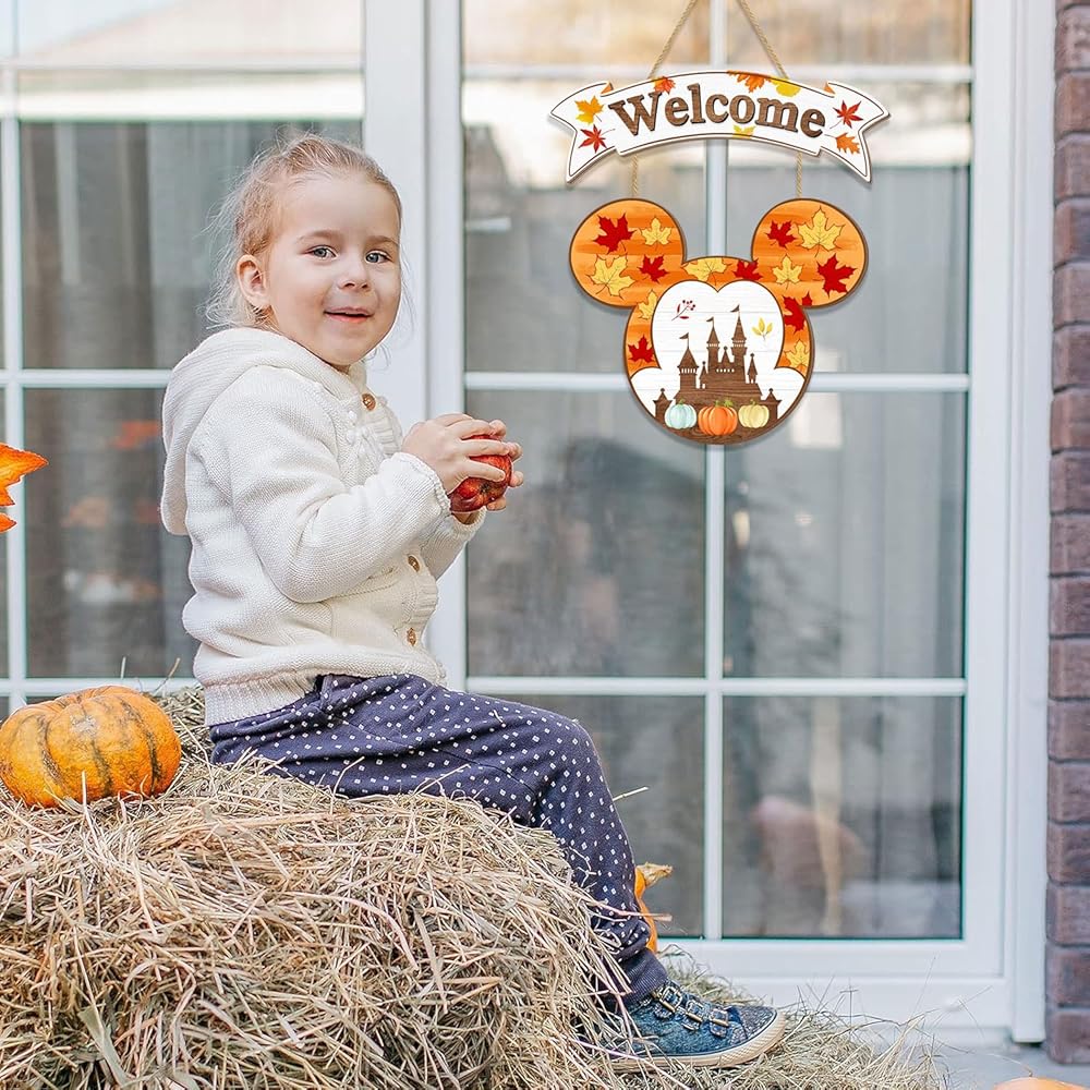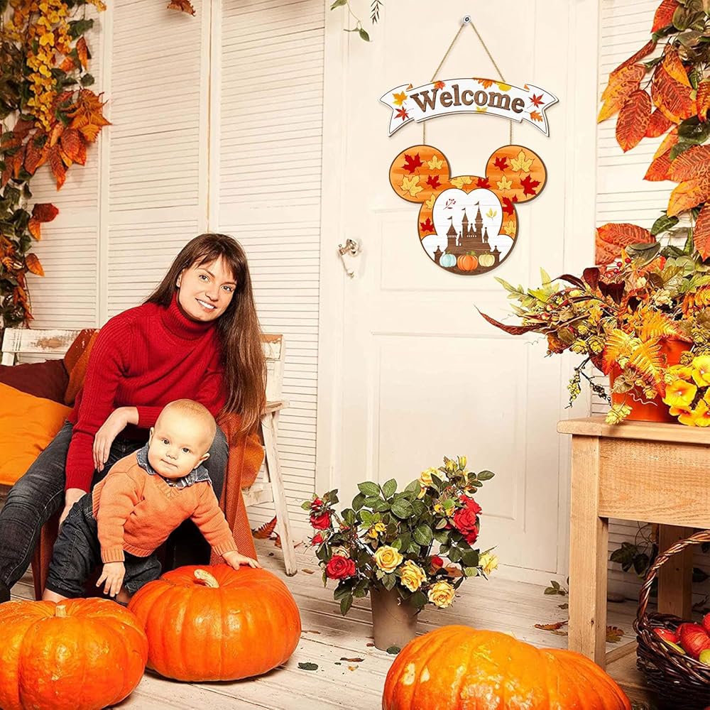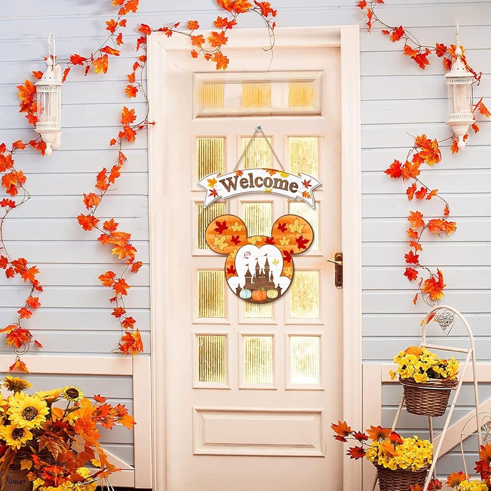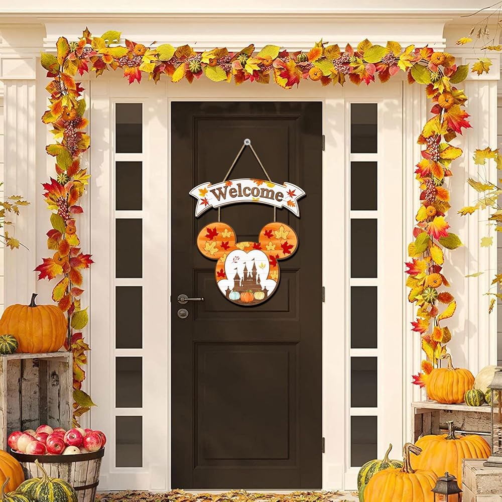 Unique Design--This beautifully crafted hanging sign of fall mouse uses a wealth of fall elements, such as Pumpkins and Maple Leaves, "Welcome" is arranged with classic fonts, unique and delicate. Really special for the autumn decoration.