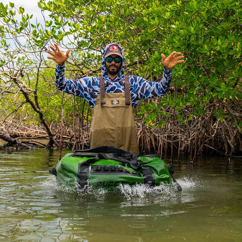 【100% WATERPROOF】Buffalo Gear waterproof dry bag is constructed with a durable, tear-resistant 1000D tarpaulin shell and scuba-style, fully waterproof and submersible zipper and double-stitched construction to effectively protect against rain, snow, dust, and odors. Able to handle any extreme environment with ease
