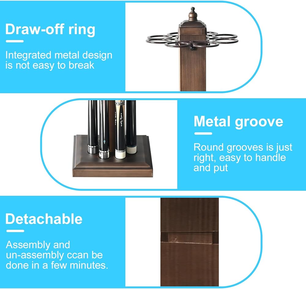 Easy assembly, this cue holder can be assembled in a few minutes and easier to use. (Note: Cues are not included