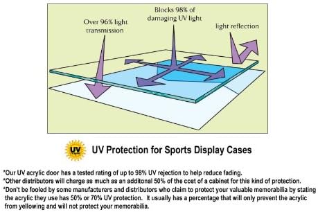 Display case comes standard with a 98% UV Protection acrylic door, lockable latches with keys, and all hardware to mount the case to the wall. Comes fully assembled. (coins shown are not included). Unit Weight: 6 lbs. Dimensions: 18"H X 14"W X 1.75"D Space between Shelves: 1.75"