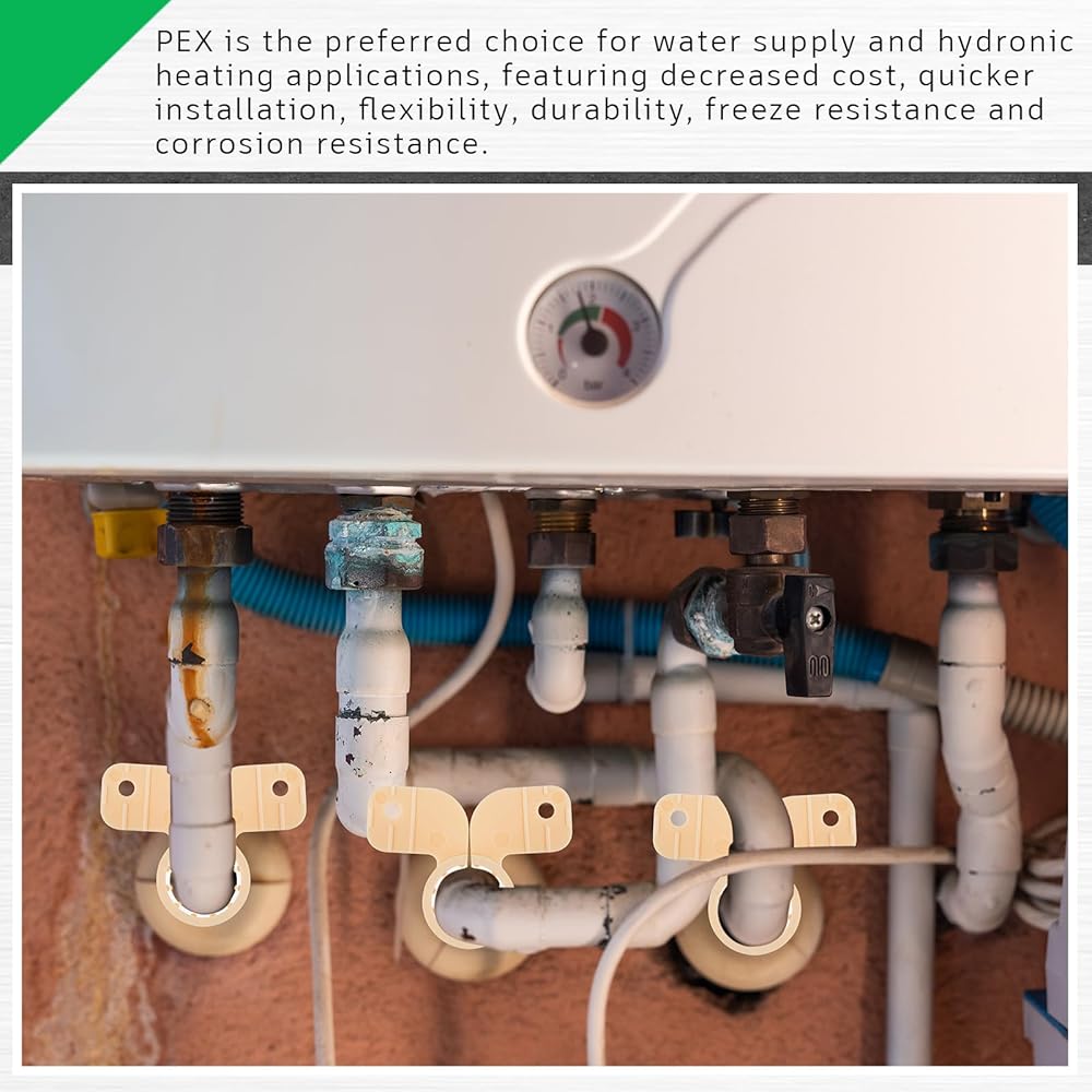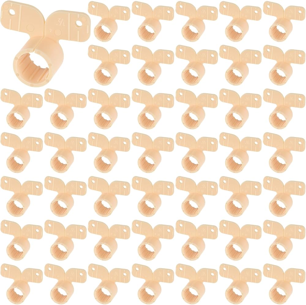 This package includes 50 pcs of 1/2 inch black hard plastic pipe clamps. The pipe supports are easy to install, have a nice design, and are compatible with copper, PEX, and CPVC tubings.