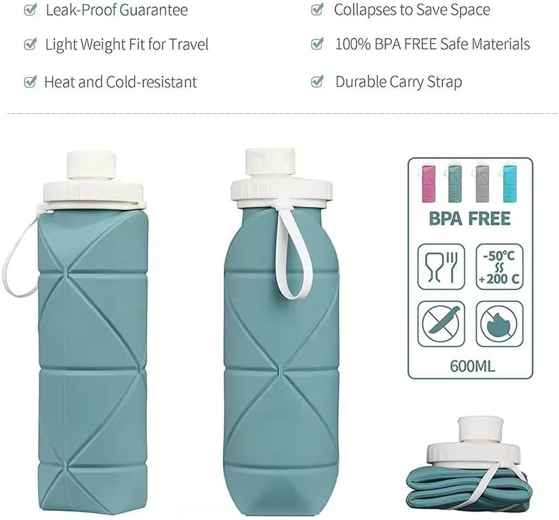 Collapsible and Portable: Our water bottle cups are designed to be collapsible and foldable, making them incredibly convenient for travel and outdoor activities. With a leakproof valve, you can easily carry them in your backpack or pocket without worrying about spills.
