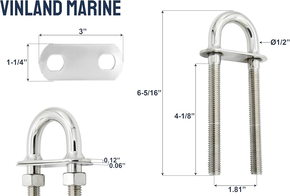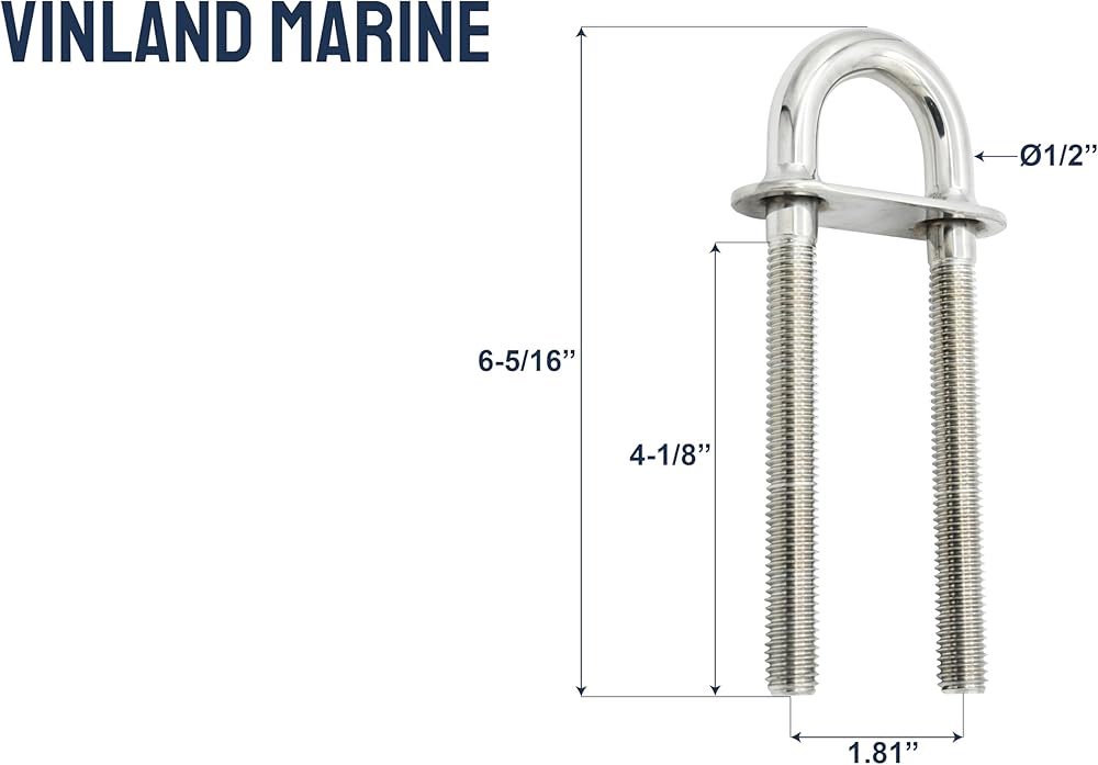 Discover the unparalleled strength and reliability of Vinland Marine's latest offering, the Stern Eye U-Bolt with Welded Plate. Engineered for endurance, this U-bolt is a testament to high-quality craftsmanship, blending functionality with durability. Ideal for a myriad of applications, it's an essential tool for those demanding the best in marine and industrial hardware. This Stern Eye U-Bolt is specifically designed for yacht, fishing boat, pontoon, and sailboat owners who demand reliability in the harsh marine environment. Its versatility also makes it ideal for automotive, plumbing, and various industrial applications. Whether at sea or on land, this U-bolt is a dependable solution for your securing needs.