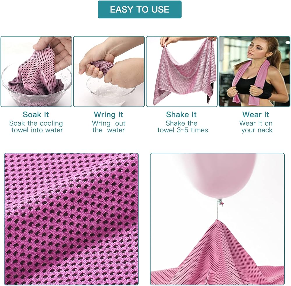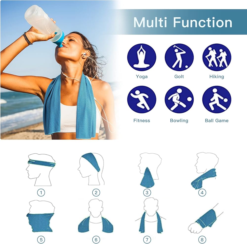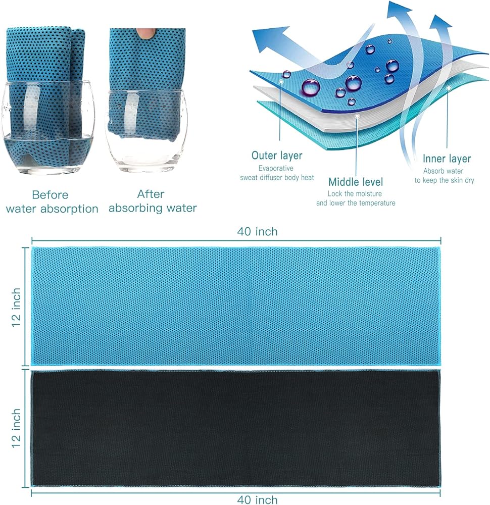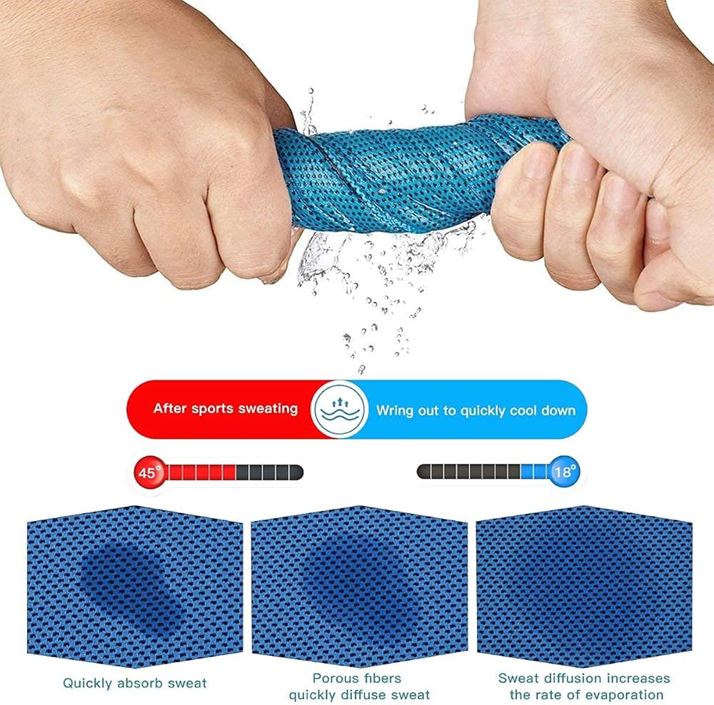 High strength water absorption: High-tech cooling fabric with high strength water absorption , it can absorb the moisture more than twice the weight of itself. Super sweat capacity. High efficiency air permeability: High quality cooling fabric with high efficiency air permeability, fiber internal water circulation, accelerate the surface water evaporation,take away the heat. Soft light, safe and healthy: Ultra-light fabric, lessen the burden, physical cooling, safe and healthy. perfect size to be a towel, scarf, headband, etc. Suitable for wrapping around your neck or head. Versatile and eco-friendly: working on the physical evaporation of moisture, no chemicals are used in the making of the cooling towels. Multifunctional usage: a great towel for beach, sports, gym, travel, hiking, backpacking, boating, camping and swimming, etc. How to use? 1. Simply "wet it" , "wing it" and "snap it" 2. When the towel is wet, it will be extremely cooler than the outside air, thereby providing cooling effect 3. When it starts to dry out after using, simply re-wet, re-wing and snap it. 4. Wet it with ice water to further enchance the cooling effect. Soft and easy to clean: made of soft cool extreme material, soft and smooth to your skin, machine washable for easy cleaning.