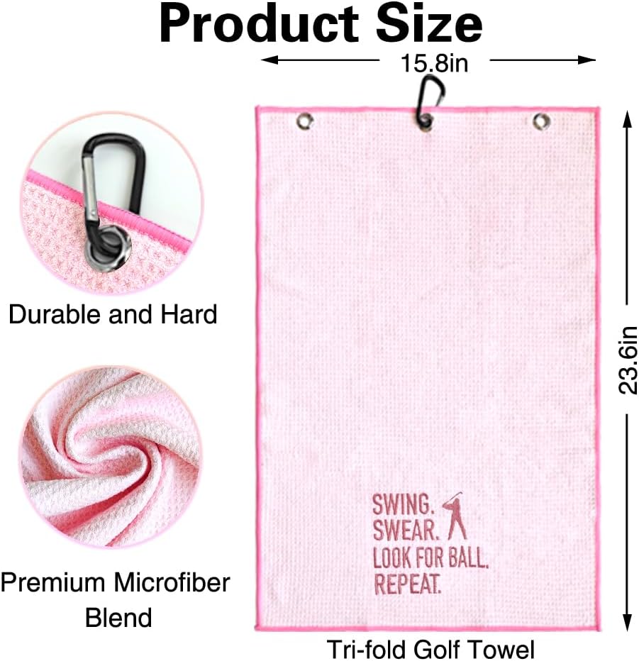 Proper Size: The golf towel is 23.6 inches long and 15.7 inches wide (Tip: manual measurement tolerances.) It's the perfect golf towel to fit into your golf bag and it doesn't take up much space