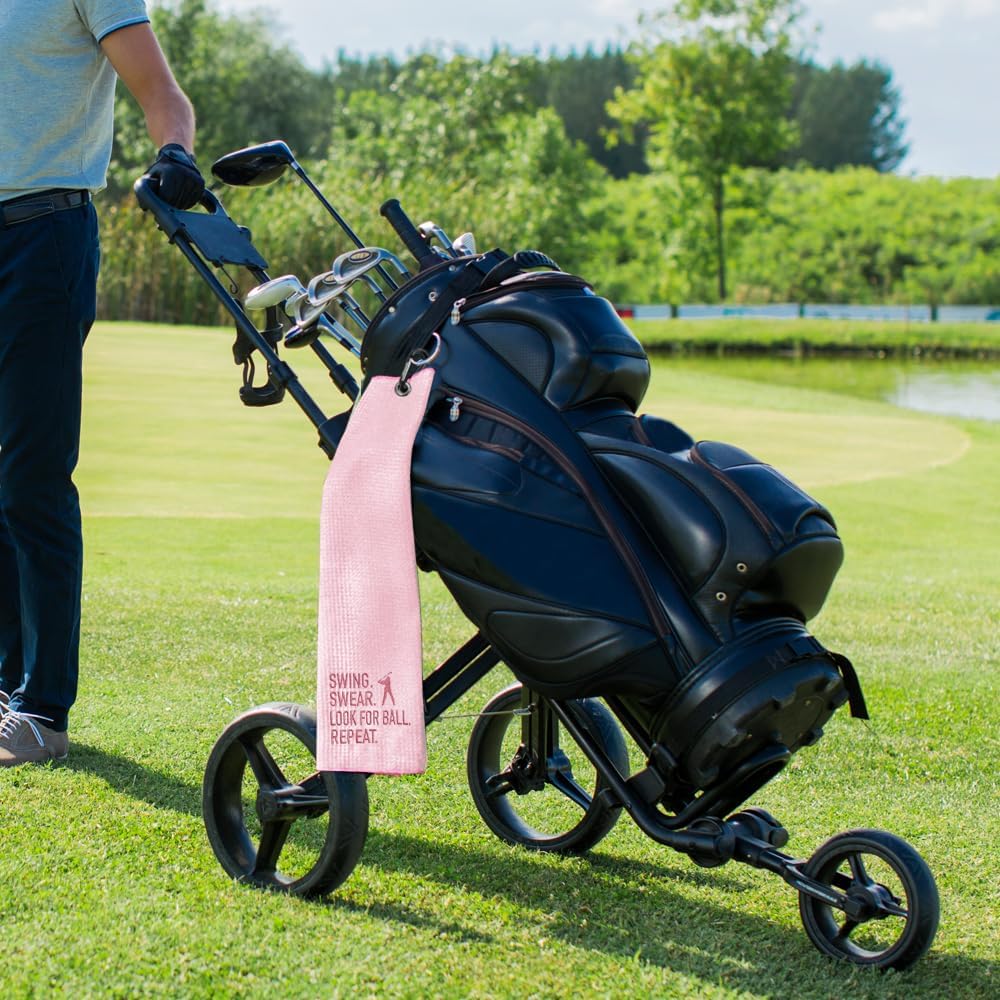 Humanized Design: Designed with a three-fold center ring and carabiner clip, the towel can be easily fixed on a golf bag, belt loop or golf cart to prevent loose clip and lost towels, it is convenient to carry and easy to use.
