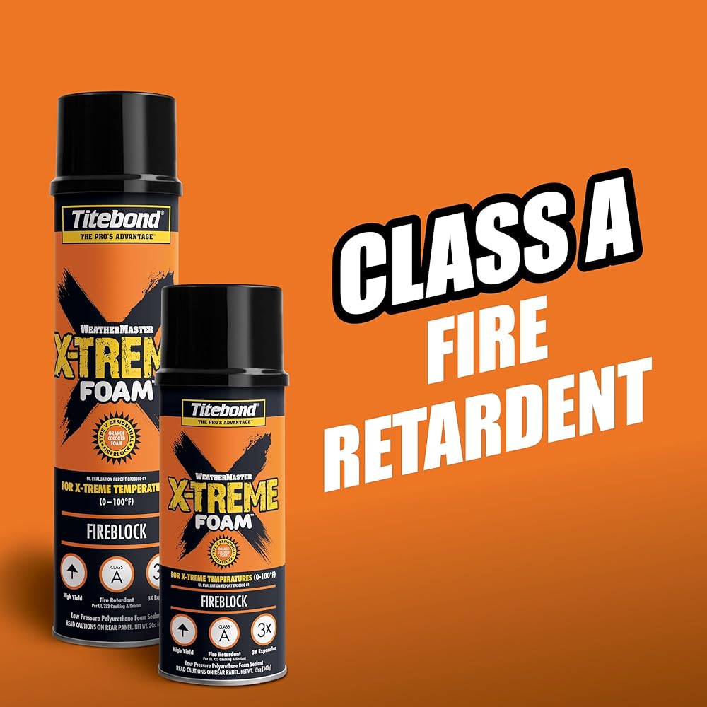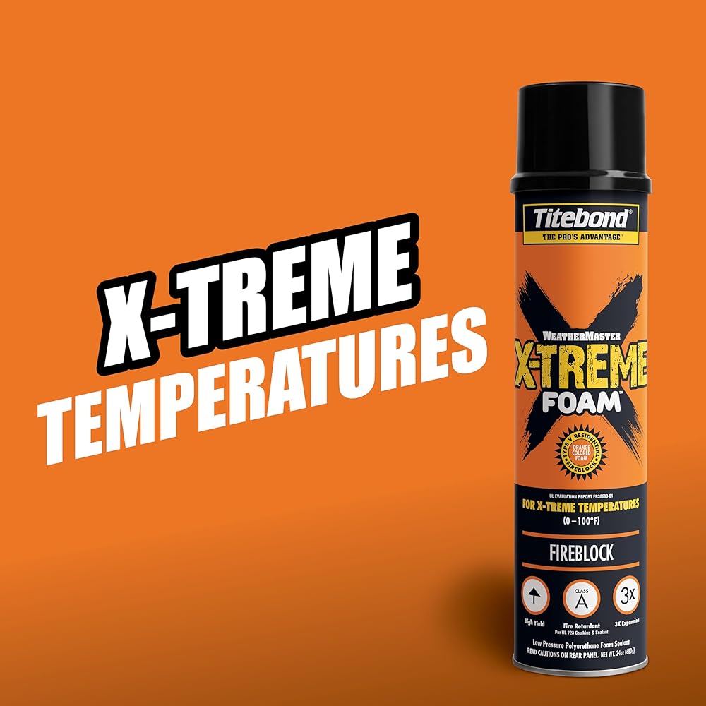 Titebond WeatherMaster X-TREME Multi-Purpose foam is a triple expansion, low pressure, one-component polyurethane foam sealant. It is moisture-cured and designed to seal and fill small cracks and voids. This product creates a tight barrier against noise, moisture and infiltration – even in X-TREME temperatures.