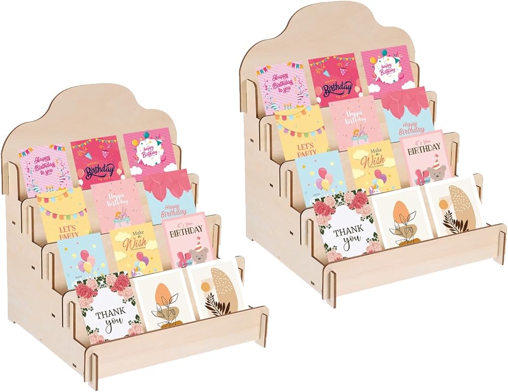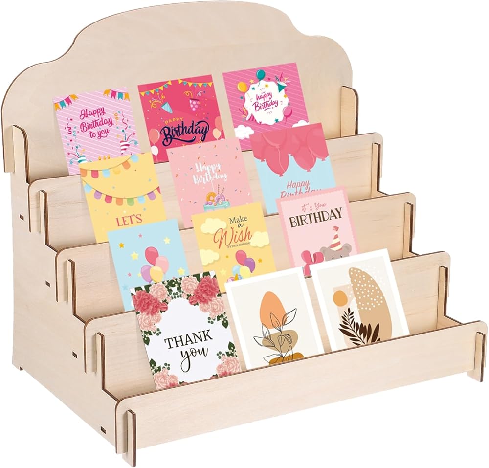 4-Tier Greeting Card Stand: Perfect for retail counters and display cabinets; It is suitable for displaying a variety of items such as greeting cards, postcards, business cards, jewelry, and more.