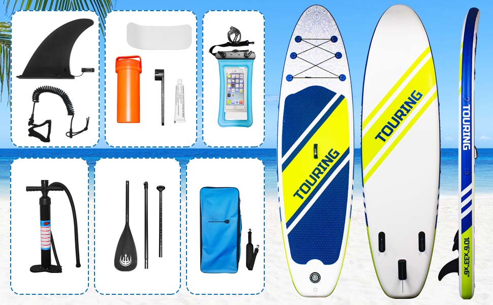 Includes all essential accessories plus a waterproof phone bag. Comes with an adjustable paddle, backpack, safety leash, hand pump, and a repair kit for convenience and safety.