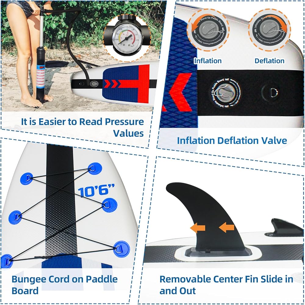 - Enhanced Stability: This paddle board features three tail fins with excellent stability. A removable tail fin allows for better maneuverability and control, perfect for youth and adults alike.