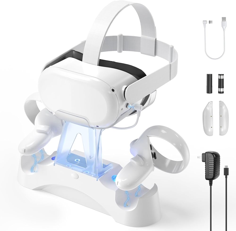 【Oculus quest 2 charging dock】 YCCTEAM magnetic rechargeable charging Station is designed for elite gamers. The VR charging station for Quest 2 charge the headset and touch Controllers at the same time. If you are looking for a charging station, with rechargeable batteries for your quest 2 accessories. Then buy this!!