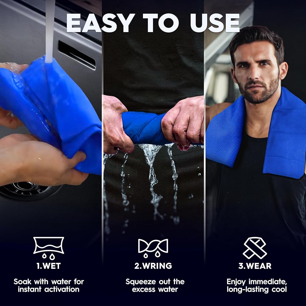 Quick Activation and Easy Care: Simply wet the towel with water to activate the cooling effect. Perfect for athletes on the go, our cooling towels come with a portable, reusable zip bag. For easy maintenance, just machine wash.If the cooling towel turns hard when dry, rince with water to reactivate.