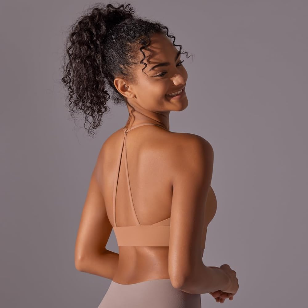 Strappy Sports Bras for Women: These criss cross althletic sport bras with strapy back style always keeping your shape. Strappy yoga bra featuring scoop neck design and backless gym bras, thin spaghetti strap workout bras for women, less pressure on shoulder, open back yoga crop top, push up sports bras, While shaping your curve, workout tops for women also show a charming back.