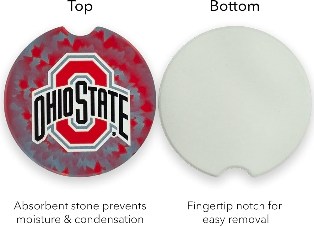 Ohio State Buckeyes University Set of 2 Car Coasters by Magnolia Lane- Removable Absorbent Ceramic Stone Coasters- Ideal Gift for Students, Alumni and Everyday Fan- Show Your Big 10 NCAA Team Spirit
