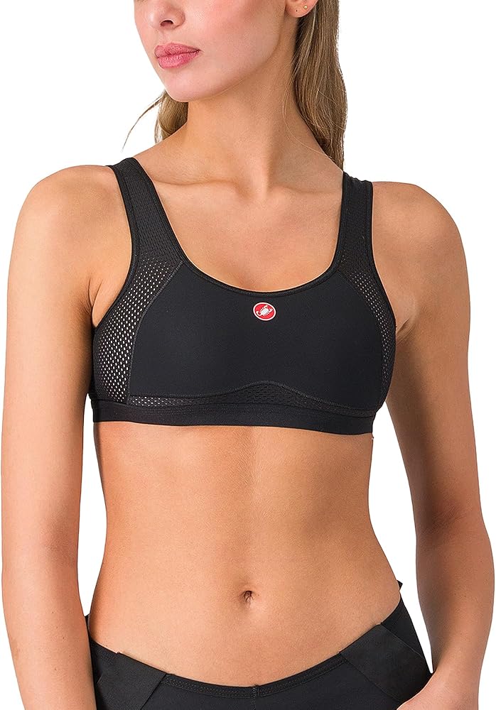 The Castelli Rosso Corsa Bra has mesh inserts for excellent breathability, moisture wicking. The ultra light fabric stretches and moves with you. The back hook-and-eye closure has 3-position regulation for simple wearing and removal. The shaped cups give you full coverage and support, while contoured seams and underbust elastic gives an excellent fit. Meant for cycling, this is not supportive like a sports bra for jogging. Available in White and Black.