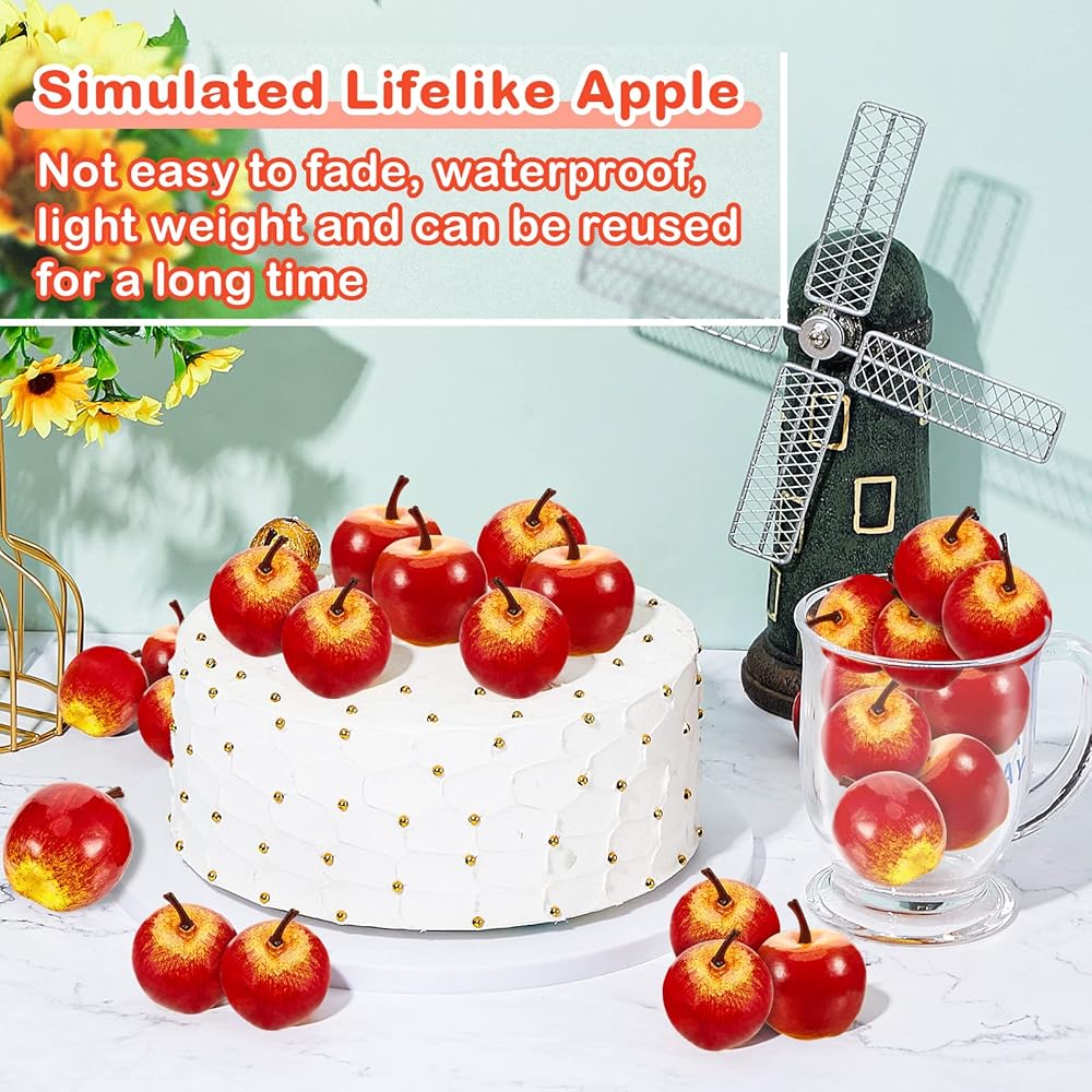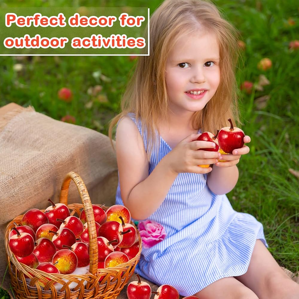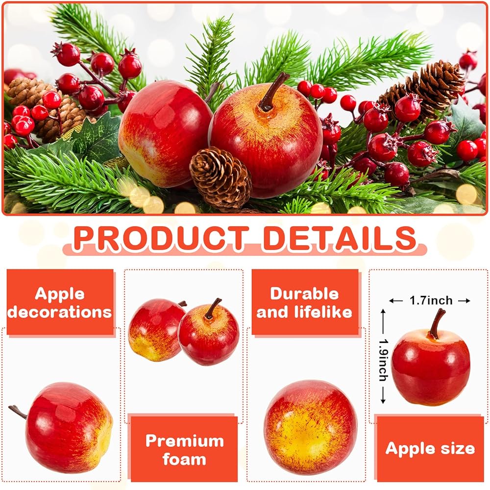 Each fake apple measures approx. 1.78 x 1.78 inches, proper size to decorate and storage, you can easily put them on the centerpiece bowl to decorate your table, or even hang them on the Christmas tree.