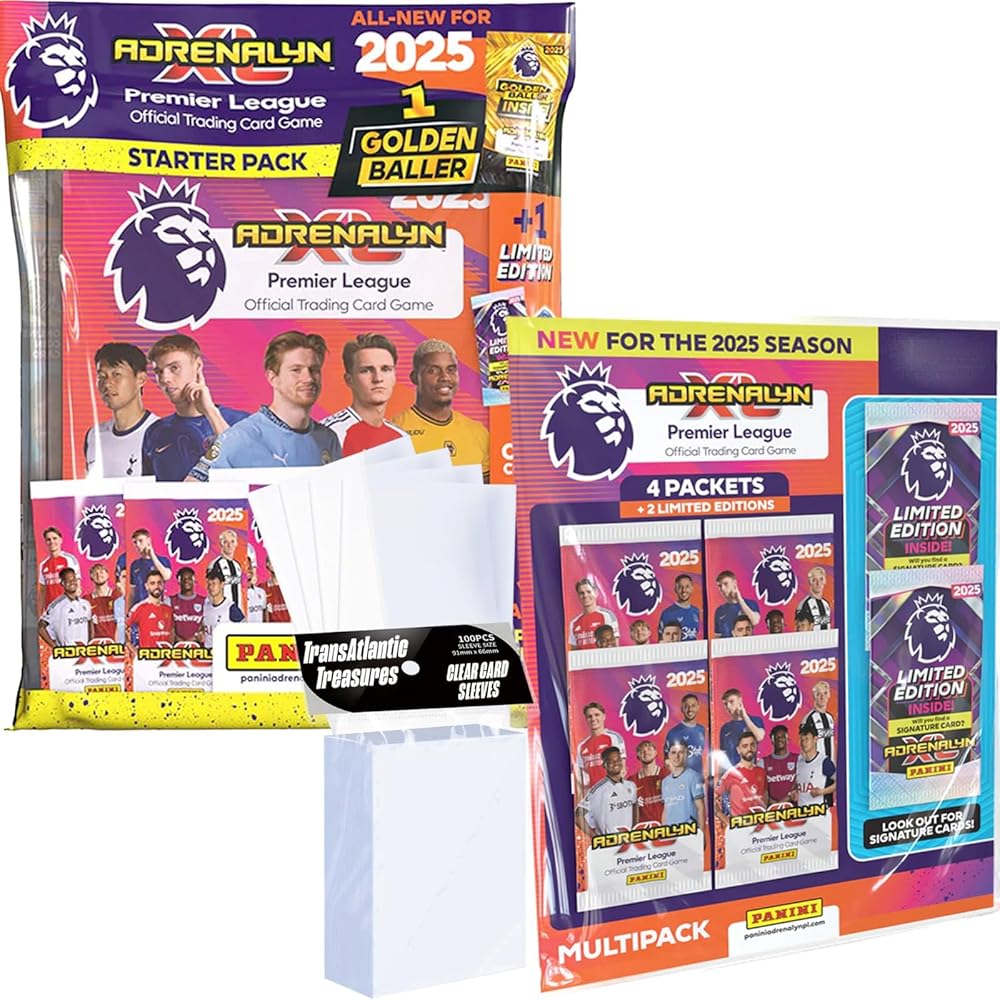 • Panini Adrenalyn XL soccer cards 2025 - With 8 all-new Golden Ballers, over 20 supercharged special card categories, and ultra-rare Limited Edition and Parallel cards to chase and collect, it's bursting with the very best the Premier League has to offer!