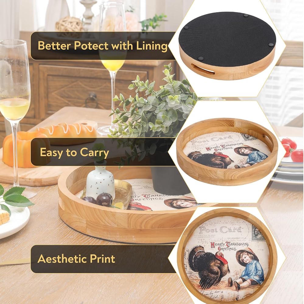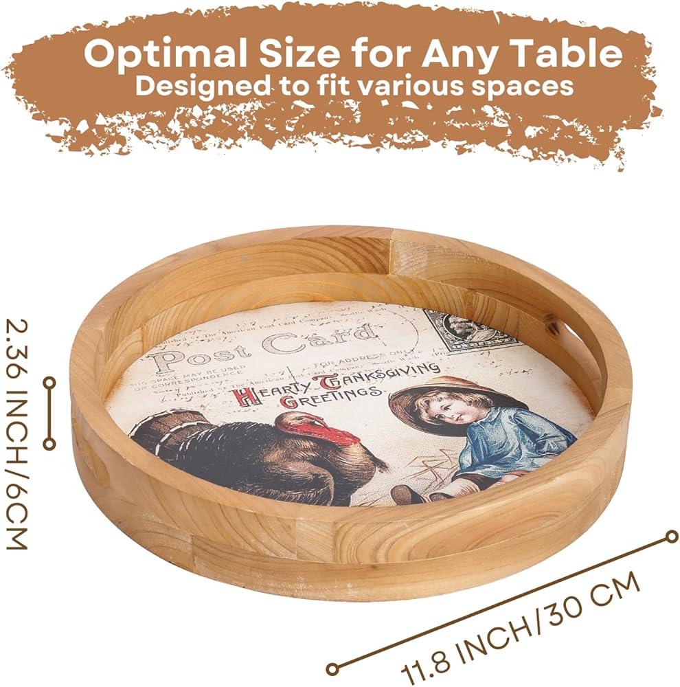 Convenient and Functional: The round shape and raised edges make it ideal for serving snacks, drinks, or desserts during your Thanksgiving gatherings, while also preventing items from slipping off.