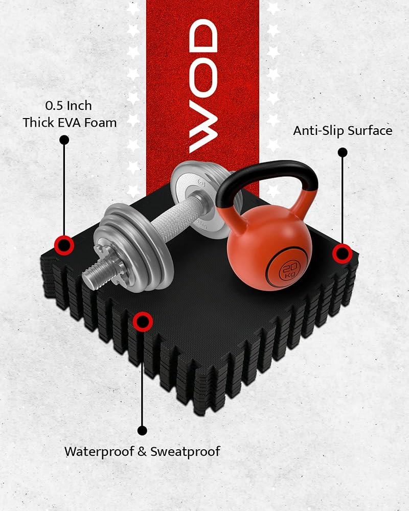 WOD NATION [12 PACK] Puzzle Exercise Mat ½" - EVA Foam Interlocking Foam Tiles Protective Flooring and Exercise Mats for Home Workout & Gym Equipment - Pack of 12 Interlocking Floor Mats, Gym Mat