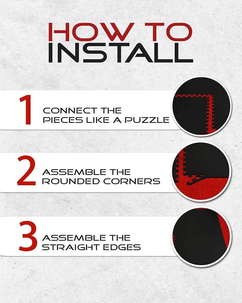 EASY TO ASSEMBLE: Lightweight puzzle mat pieces connect quickly and easily, and can be disassembled just as simply for storage. Our puzzle foam floor mats are great for home gym flooring, workout room flooring, garage flooring, and basement flooring. A perfect workout floor mats for home gym.