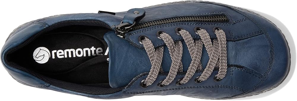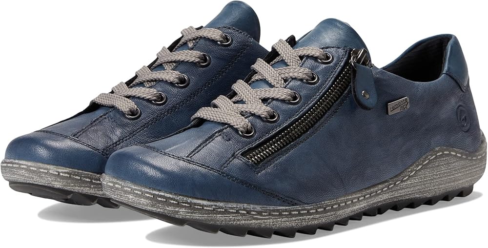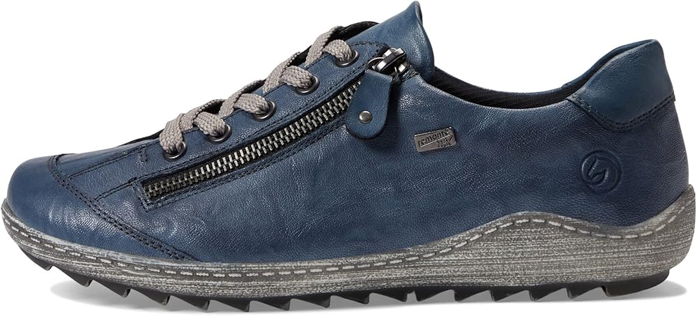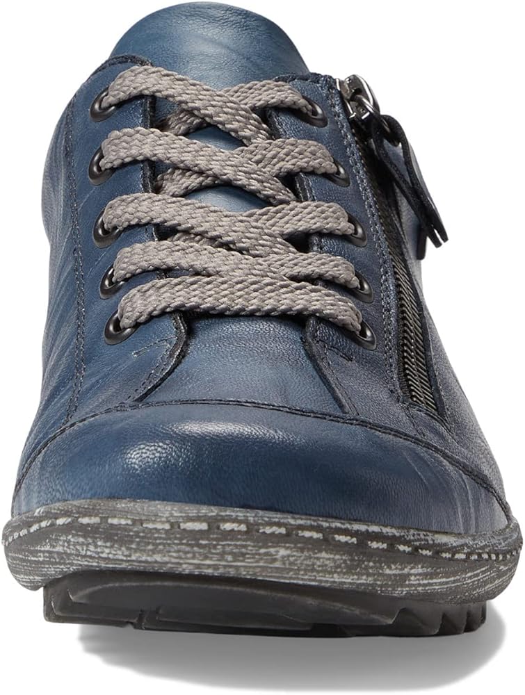 Keep dry in dreary weather with the Rieker R1402 Liv 02 sneaker. The leather upper features both adjustable laces with a zipper closure for easy and secure wear. Part of the Rieker Remonte Dorndorf Collection. Made with RemonteTex, which offers excellent water resistance and breathability for added protection against the cold. Drysport lining with a removable padded footbed. Grippy TR outsole.