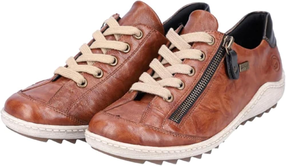 Keep dry in dreary weather with the Rieker R1402 Liv 02 sneaker. The leather upper features both adjustable laces with a zipper closure for easy and secure wear. Part of the Rieker Remonte Dorndorf Collection. Made with RemonteTex, which offers excellent water resistance and breathability for added protection against the cold. Drysport lining with a removable padded footbed. Grippy TR outsole.