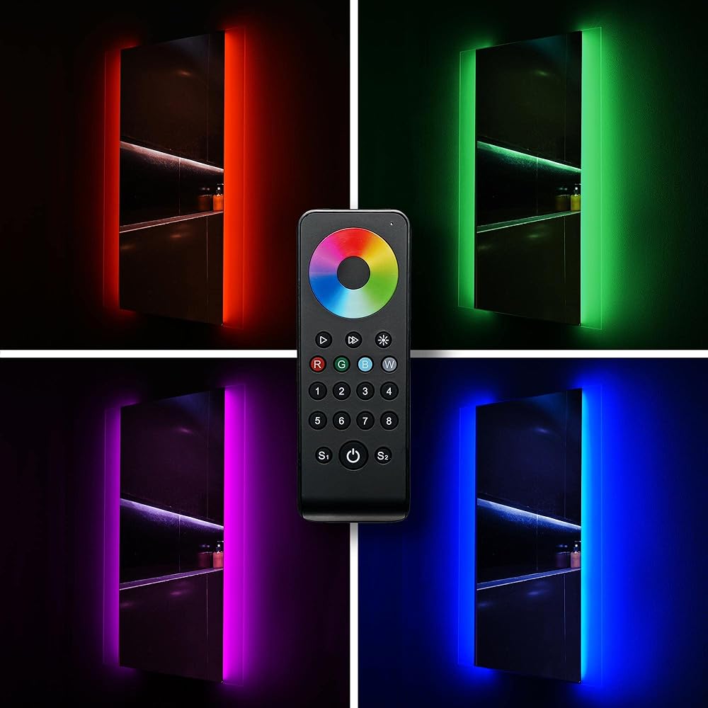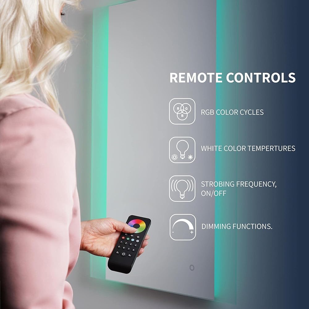 REMOTE CONTROLLED — This unique LED mirror comes with a convenient remote control that allows you to cycle between the colors. On top of this convenient feature, it comes with an on/off and dimmer touch sensor for easy control.