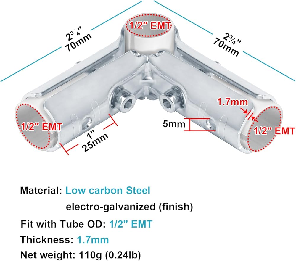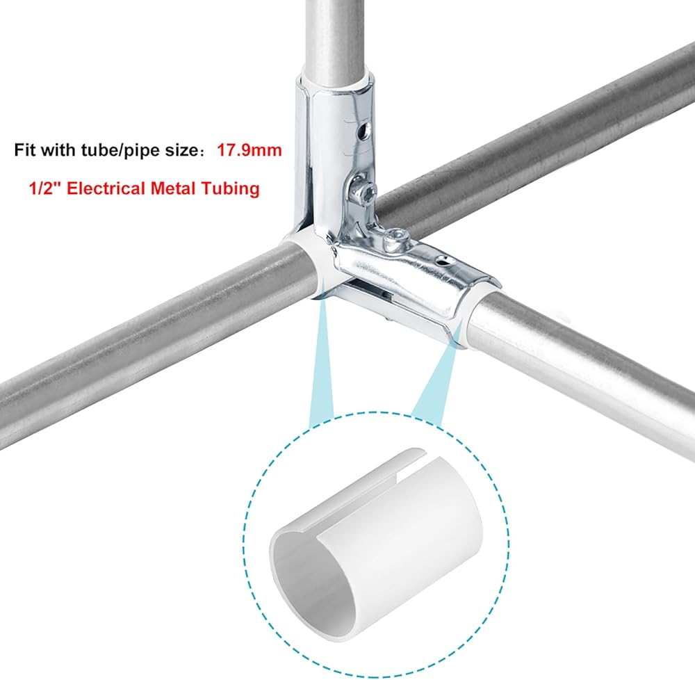 eoere 12 Sets 90 Degree Structural Pipe Connector 3 Way Metal Joint Tubing Clamps, Fit for OD 19.1 mm Stainless Steel Pipe, and Fit for 1/2" Electrical-Metallic Tubing with PE Adapter Shims