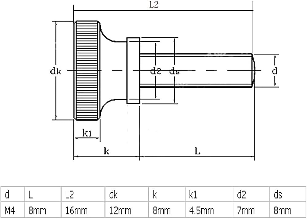 Product Name: Knurled Thumb Screws; Thread Size: M4 x 8mm/ 0.16" x 0.3" (D*L); Weight: 26g