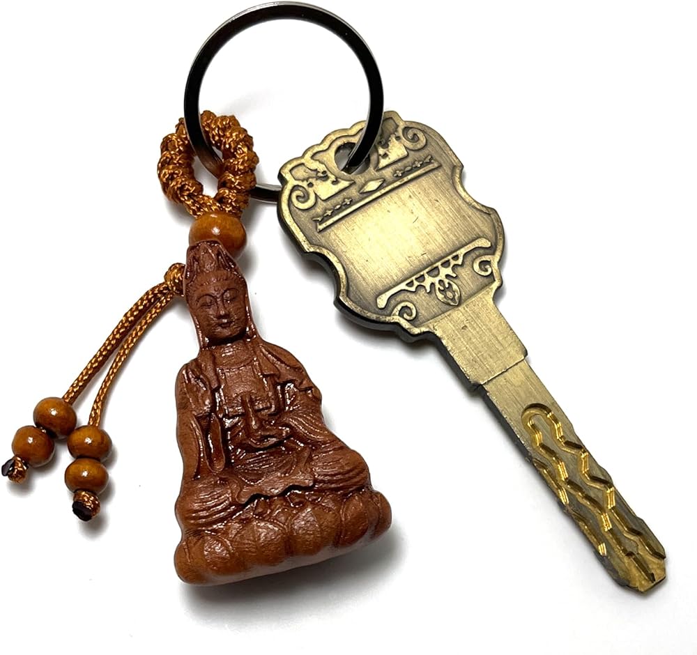 Feng Shui Buddha KeyChain Wood Avalokitesvara Purse Charm Amulet Spiritual Gifts for Wealth Good Luck