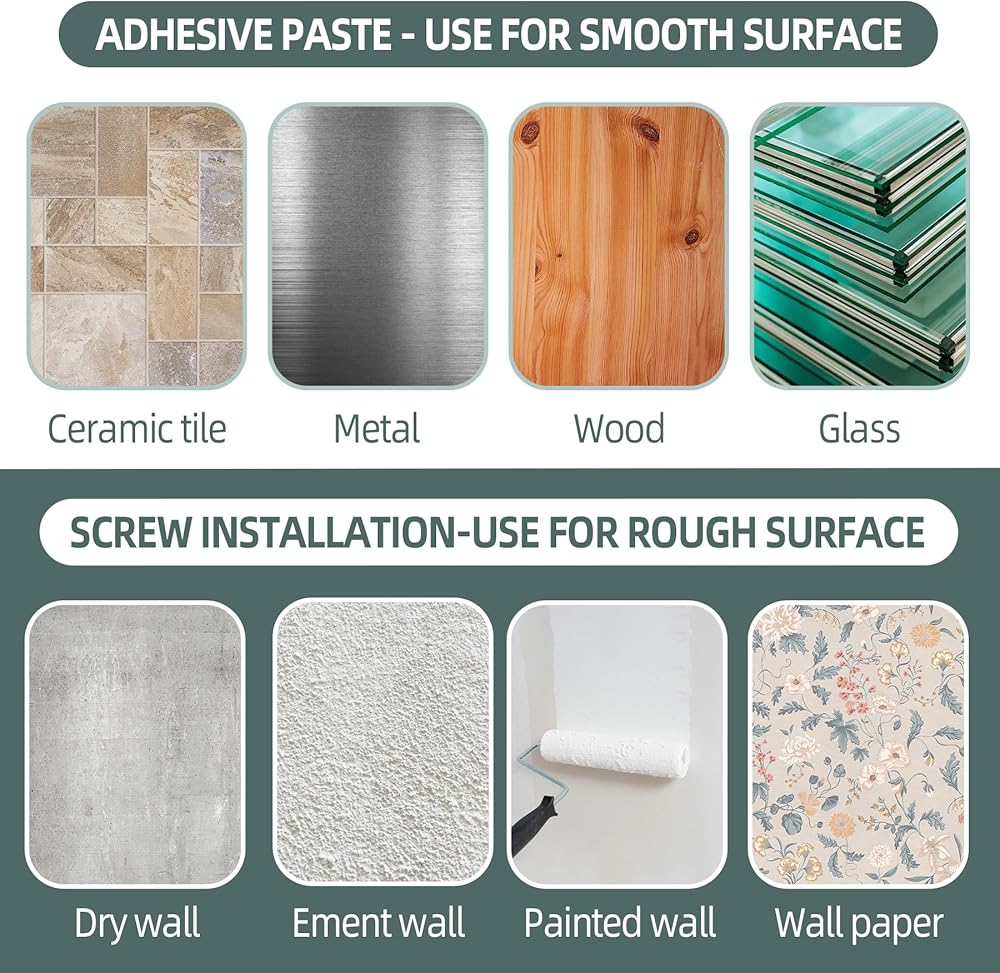 No-Tools 1-Second Installation: Peel and stick the adhesive back to the wall for a quick and easy installation. No need for drills, nails, scrawls, and so on