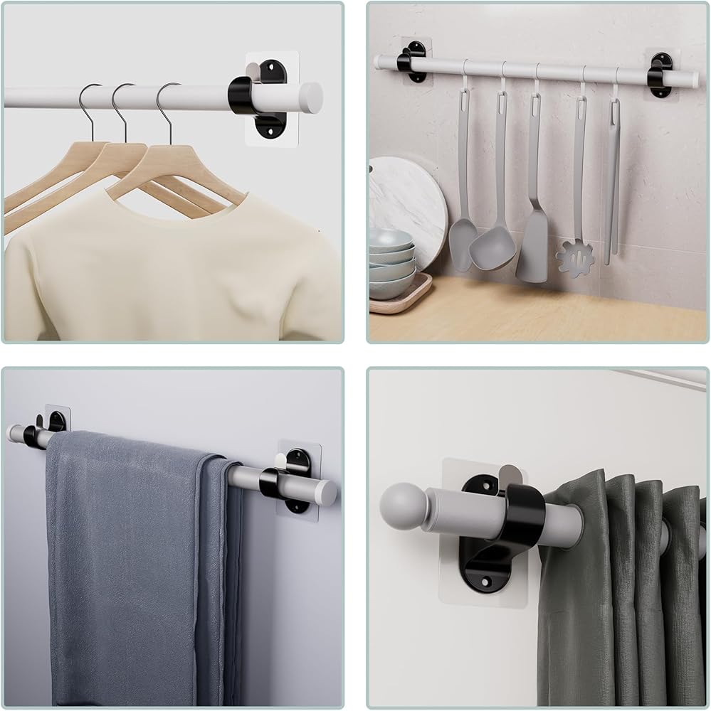 Versatile Use: These curtain rod brackets are suitable for smooth surfaces such as home furnishings, glass, mirrors, ceramic tiles, marble, stainless steel, and so on., also suitable for apartment, bathroom, bedroom, living room, office, and so on