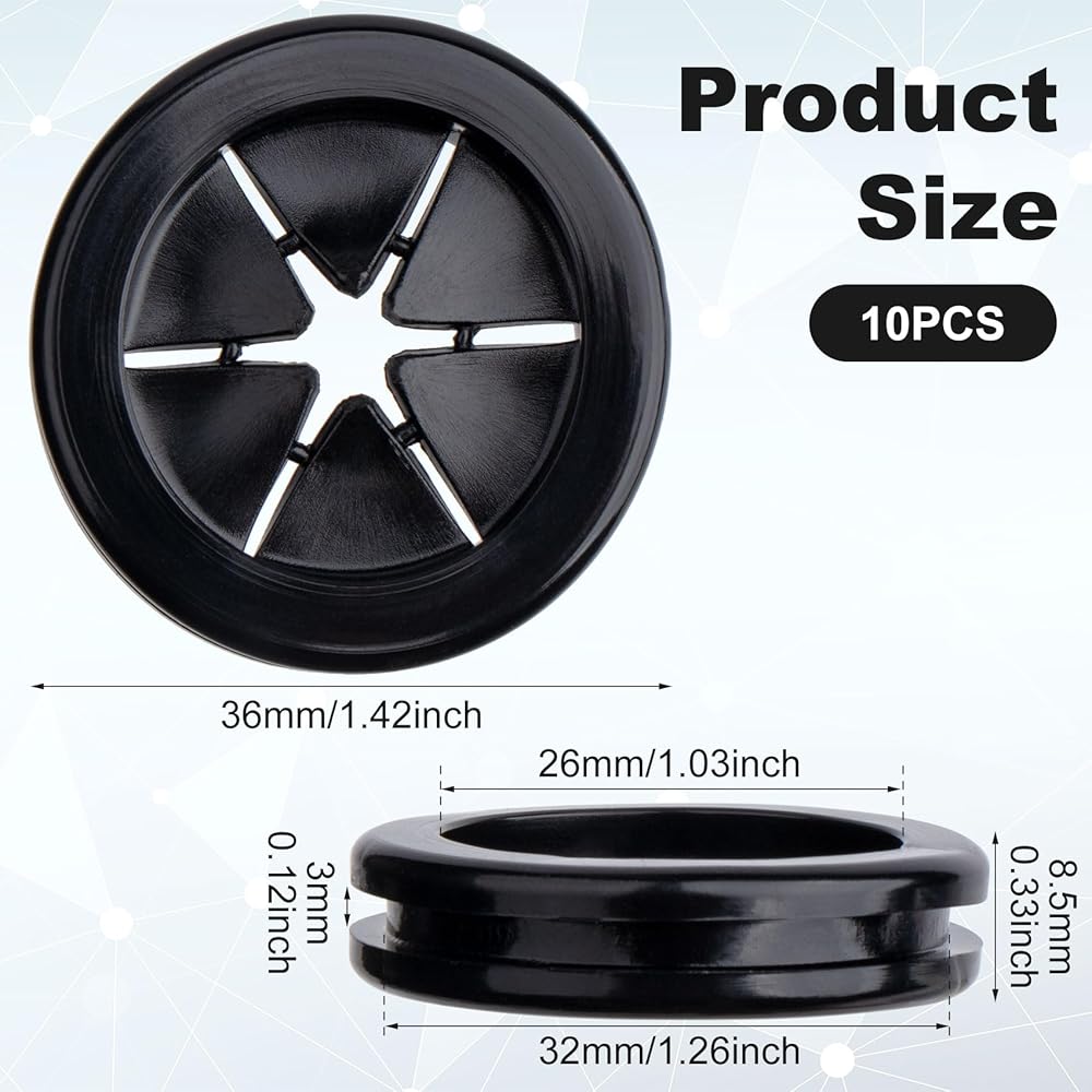 【Pack & Size】There are about 10pcs rubber grommets, size about 26mm / 1" inner diameter,32mm / 1-1/4" drilling hole, 36mm / 1-3/7" outer diameter, 3mm / 1/8" groove width, 9mm / 3/8" total thickness.