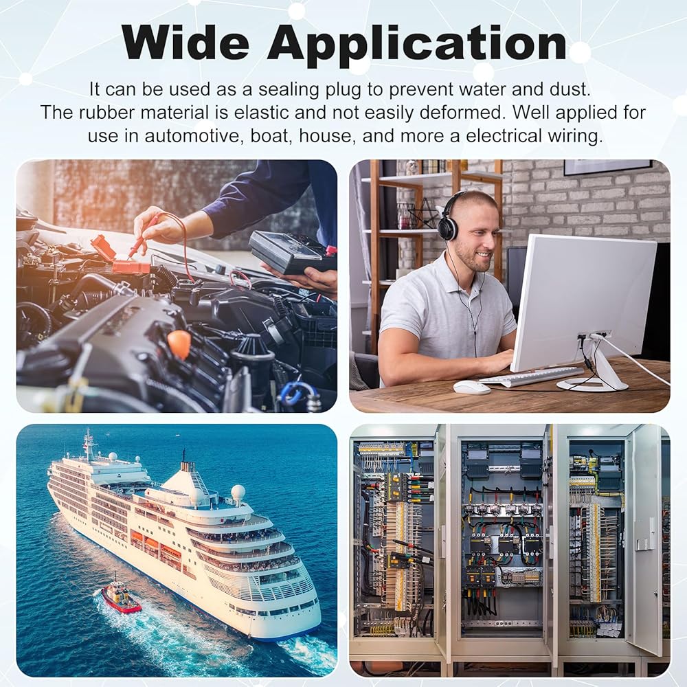 【Easily Installation】Rubber gaskets are elastic and can be freely cut according to the diameter and thickness of the wire. Rubber gaskets can be easily inserted into the drilling hole.