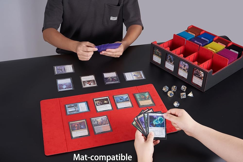 【Versatile Card Collection Box】Designed for gamers and collectors, our deck card boxes are perfect for a variety of game cards and collectibles, including Magic: The Gathering, Dragon Shield, One Piece, Pokémon, YuGiOh!, Duel Masters, sports cards, and Dominion cards with expansions. Featuring a sturdy PU leather shell for shock protection, a soft microfiber interior to prevent scratches, and multiple magnets for a secure closure, this large trading card box ensures safe transportation and organization, making it a top-notch choice for card players!
