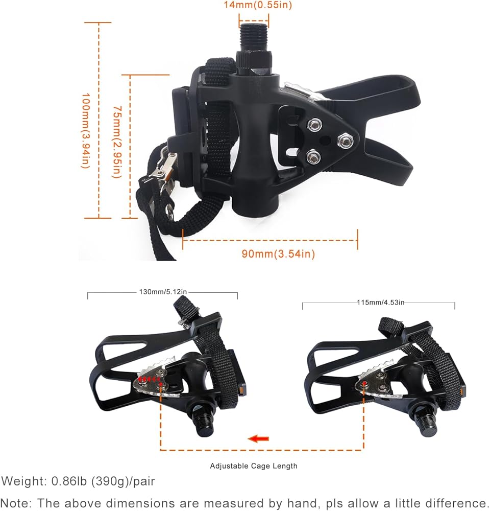 Package includes: One pair of Pedals with pre-installed toe clilp and straps.